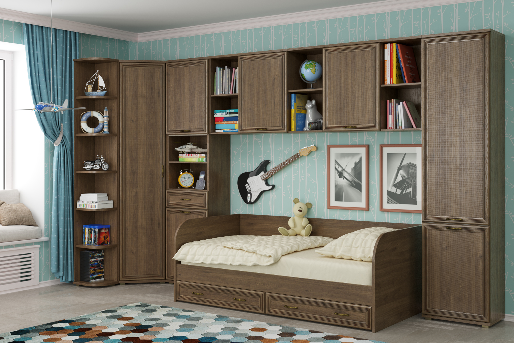 Коллекция включает в себя более 70-ти оригинальных модулей, созданная с их помощью композиция отлично впишется в любое помещение. Программа «Карина» позволит создать уют и гармонию в детской или подростковой комнате.