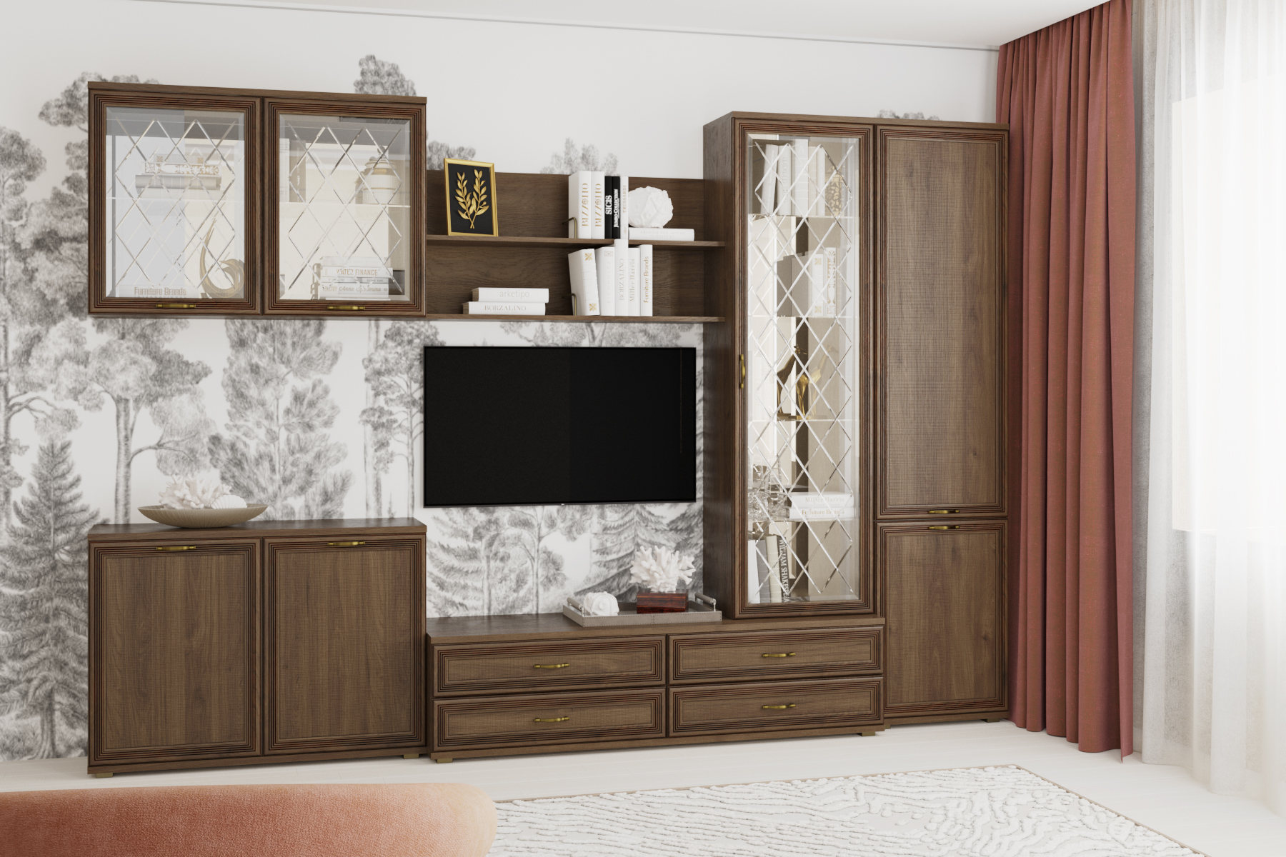 Коллекция включает в себя более 70-ти оригинальных модулей, созданная с их помощью композиция отлично впишется в любое помещение. Программа «Карина» позволит создать уют и гармонию в гостиной.