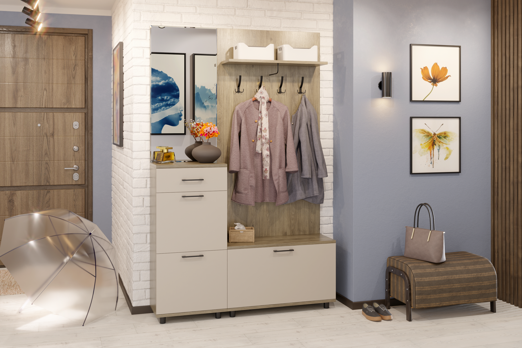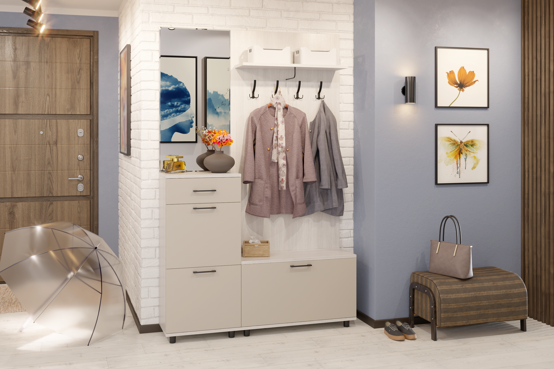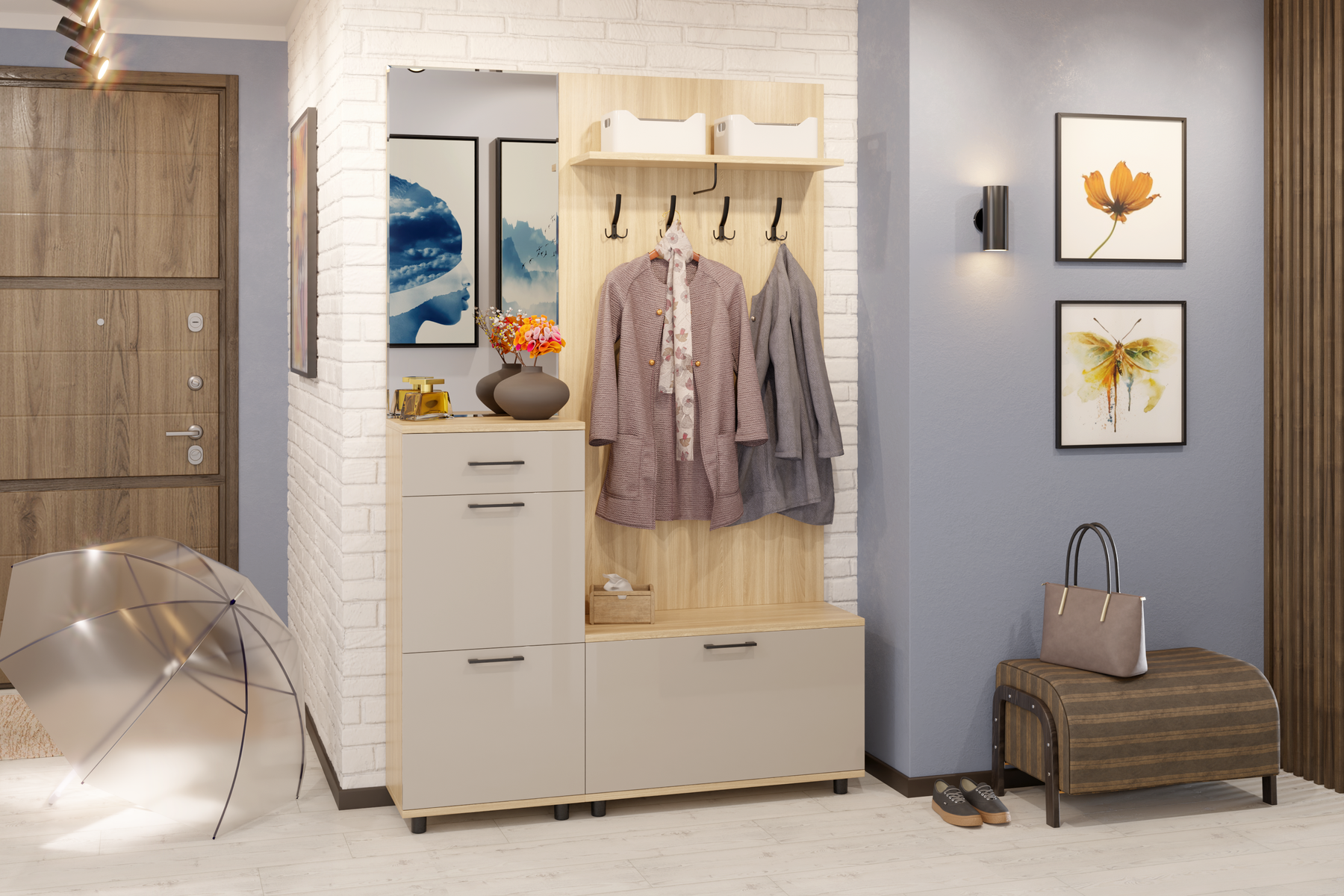 Модульная программа мебели для прихожих «Грэйс» представляет собой набор отдельных, самостоятельных секций, стилистически и функционально сочетающихся между собой: тумбы, комоды, зеркала, полки, антресоли и вместительная шкафная группа.